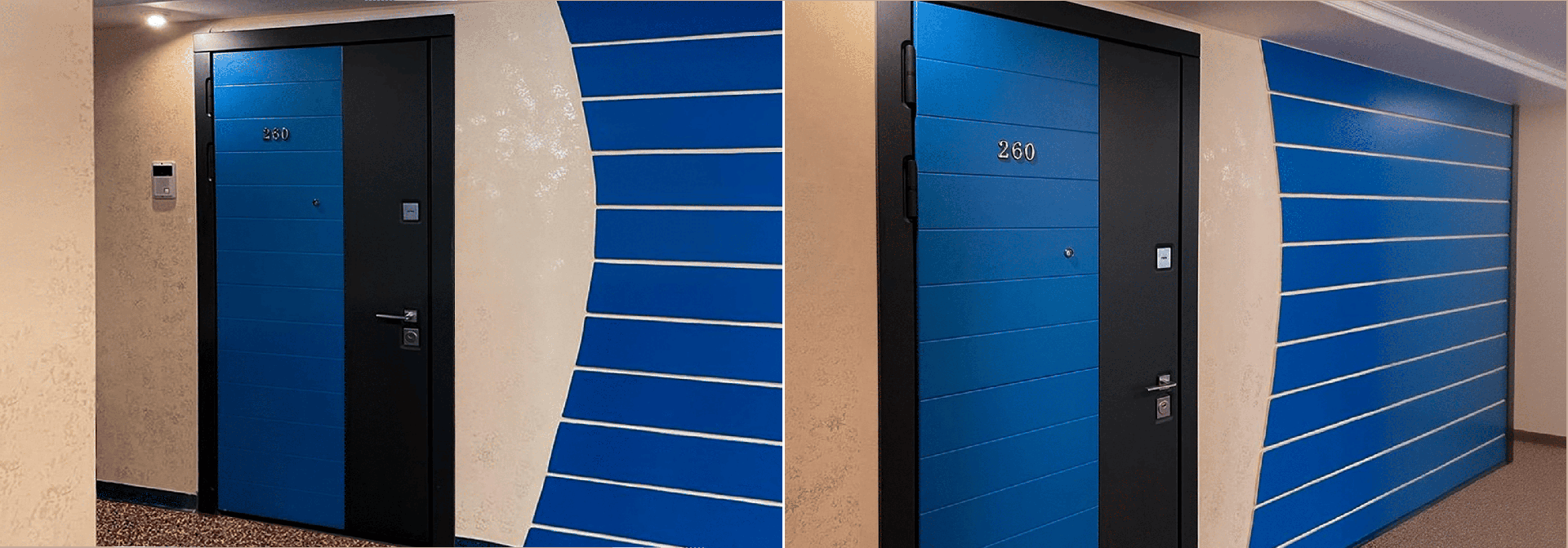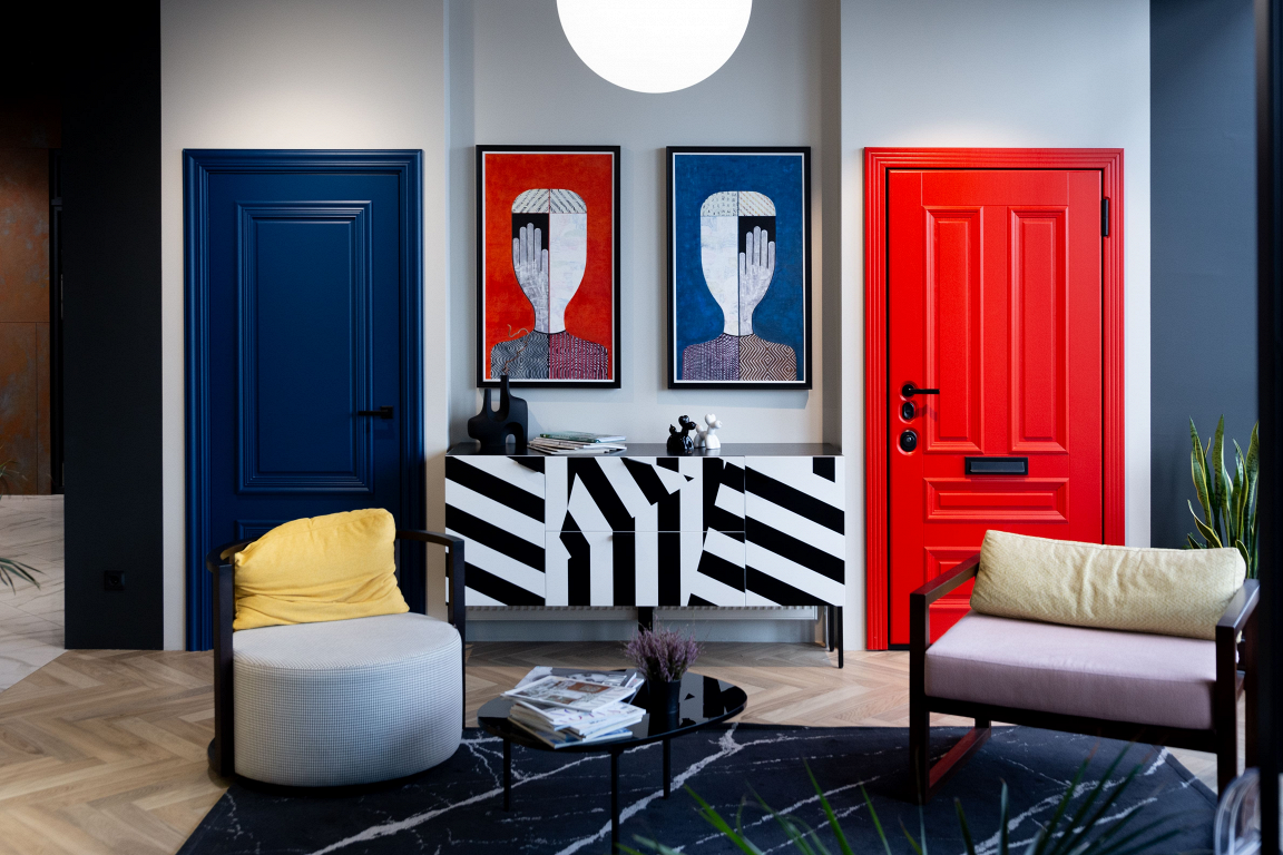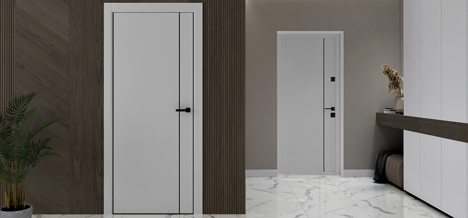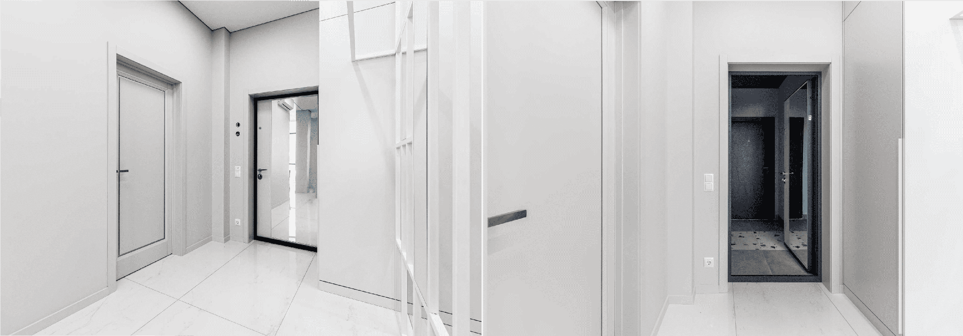 Мы подобрали одинаковые рисунки и цветовые решения для входных и межкомнатных дверей для создания единого гармоничного интерьерного пространства, в котором учтена каждая деталь.
