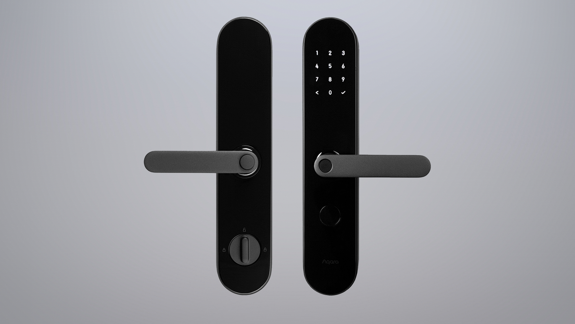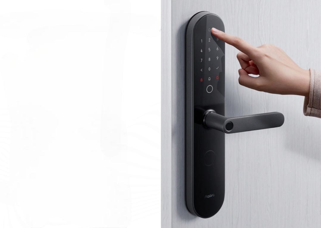 Умный замок Aqara N100: разблокируется по отпечатку пальца, приложению на смартфоне через Bluetooth, NFC-карте или паролю, легко интегрируется в систему «Умный дом», оборудован встроенной сигнализацией и дверным звонком.