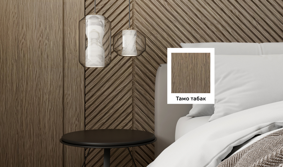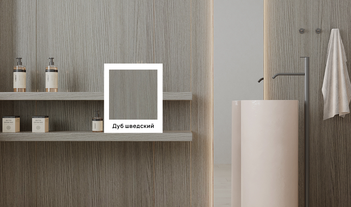 Покрытие демонстрирует богатую текстура дуба, с волнистым узором. Глубокий цвет отделки “Дуб шведский” внесет нотку роскоши в ваш интерьер.