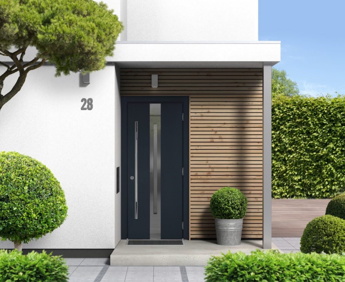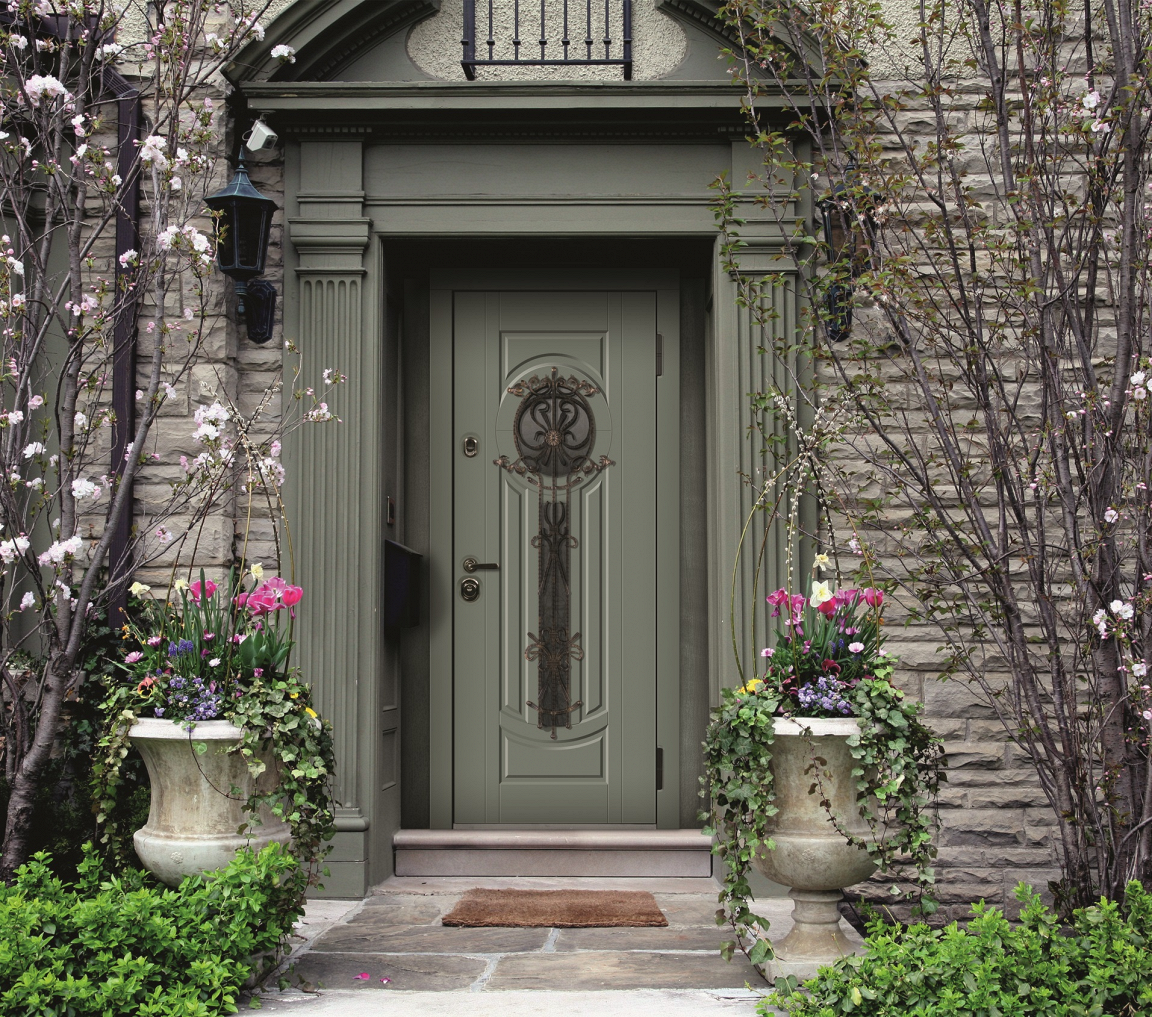 - Двери для парадного входа Серии 100У с уникальной безмолдинговой конструкцией и многослойным утеплением полотна обеспечивают защиту от холода.