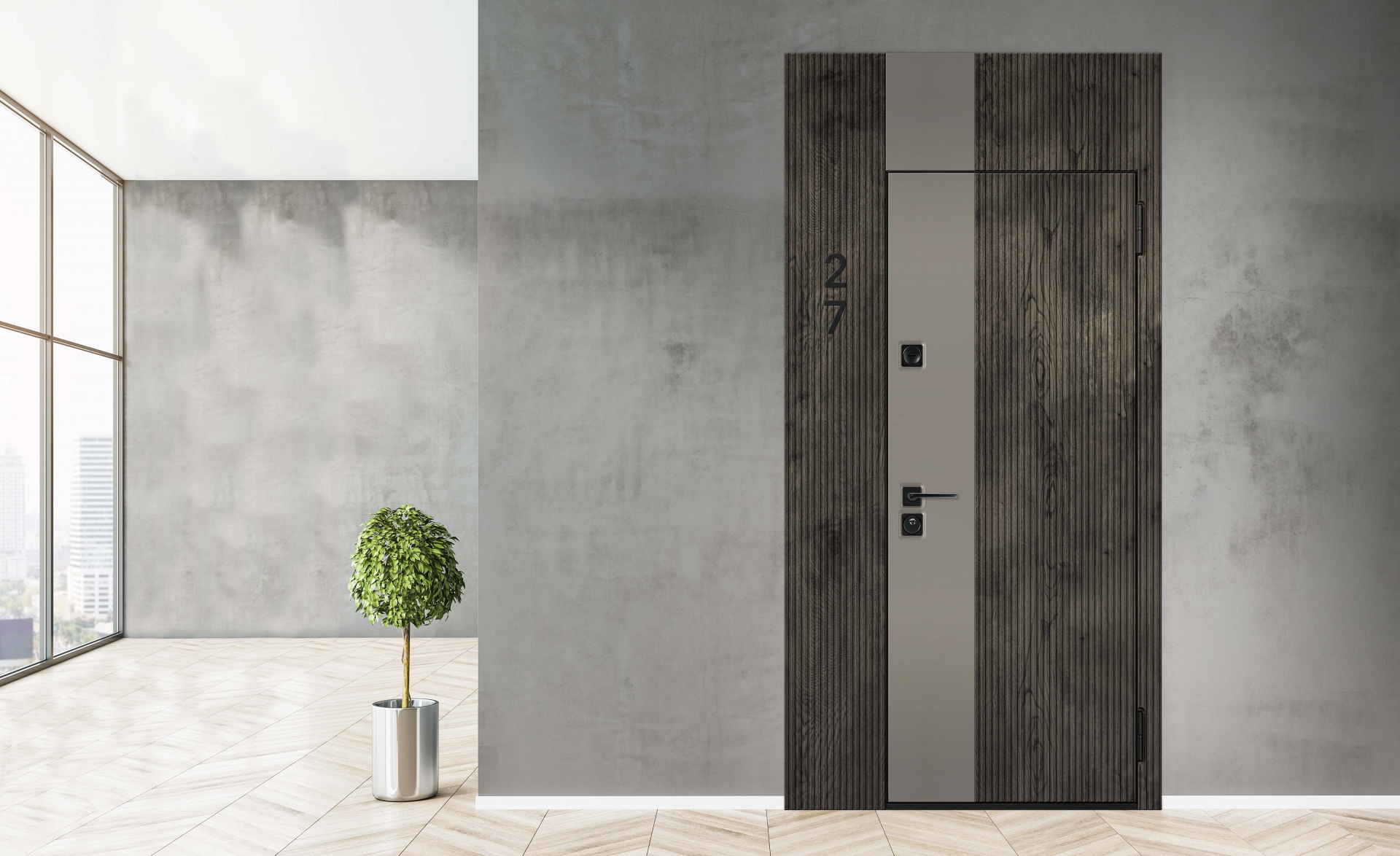 Сдержанные цвета, натуральные тона, сочетание фактур камня и дерева с гладкими поверхностями — такие двери выглядят стильно, элегантно и великолепно отражают выбранный стиль в дизайне.