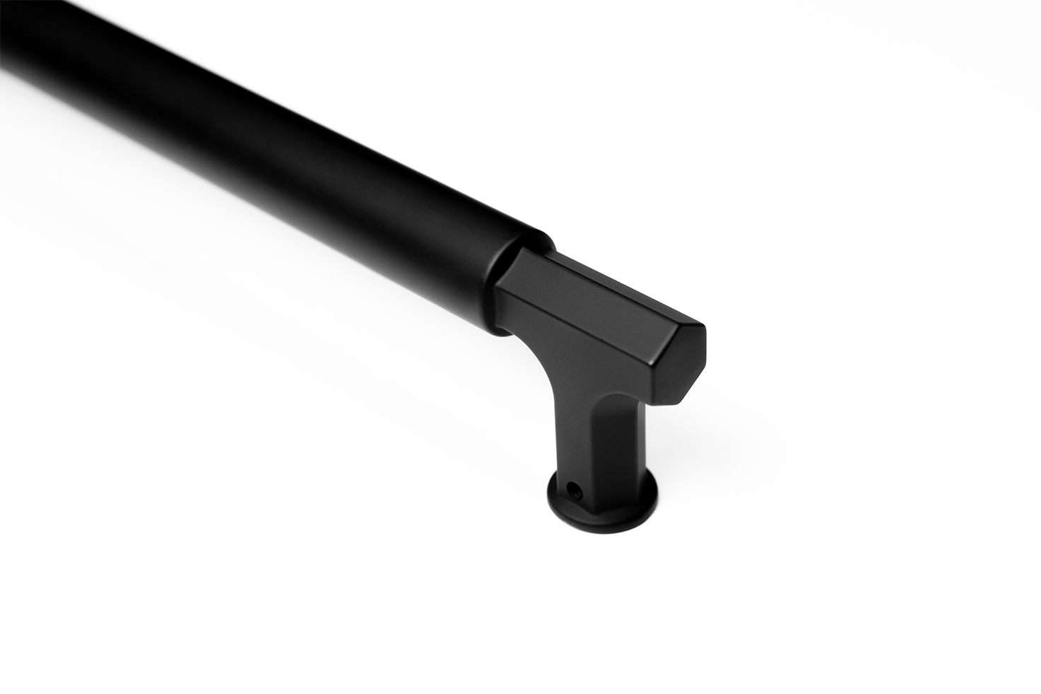 Ручки-скобы Nola и Iris выполнены в глубоком черном цвете с благородной матовой поверхностью. Тактильно приятные, ручки имеют небольшую длину, за счет чего могут использоваться не только соло, но и как дополнительный декор. Скобы – элегантное решение для размещения на внутренней стороне двери, где рейлинги выглядят слишком массивными за счет размера.