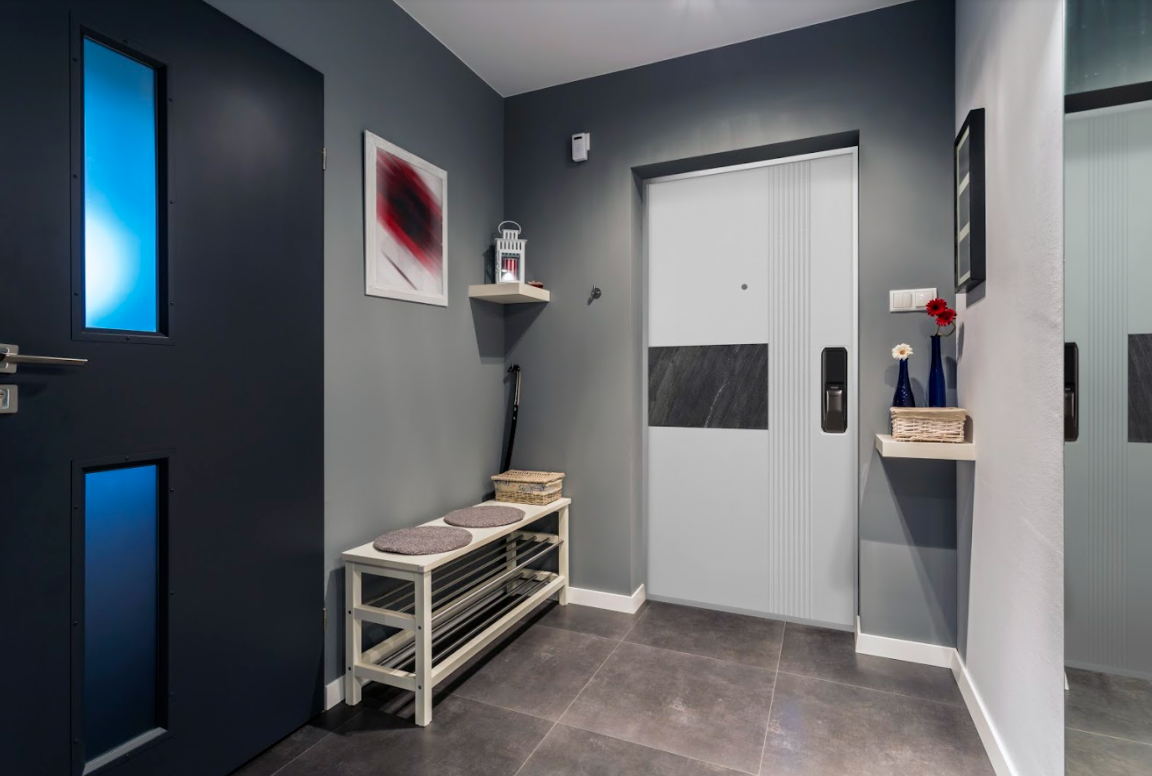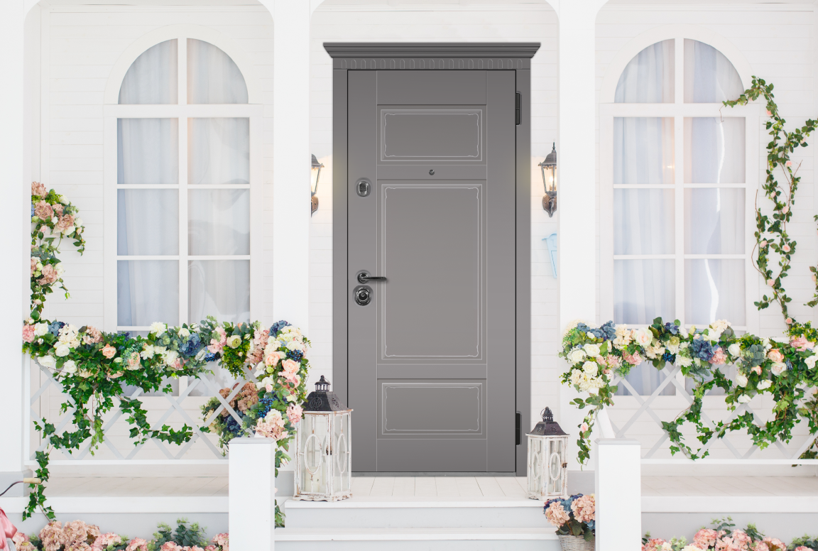Благодаря лаконичному и универсальному дизайну входные двери в этом стиле гармонично сочетаются как с классической фурнитурой, так и с современными, строгими и геометрическими формами.