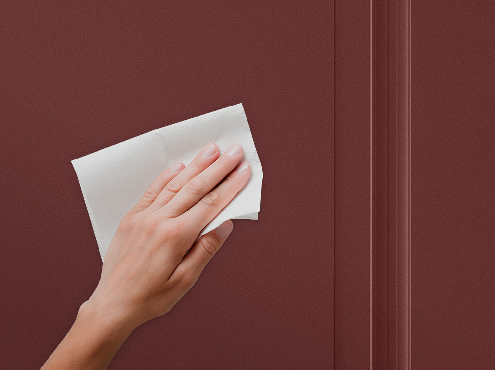 Высокая плотность микрошагрени позволяет ей оставаться стойкой к легким механическим повреждениям. На мелкозернистой фактуре не остаются следы от пальцев, она не чувствительна к загрязнениям и воздействию моющих средств.