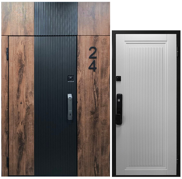 Снаружи: SteelLak «Черный» RAL 9005, структурный, Экошпон Premium «Дуб королевский»