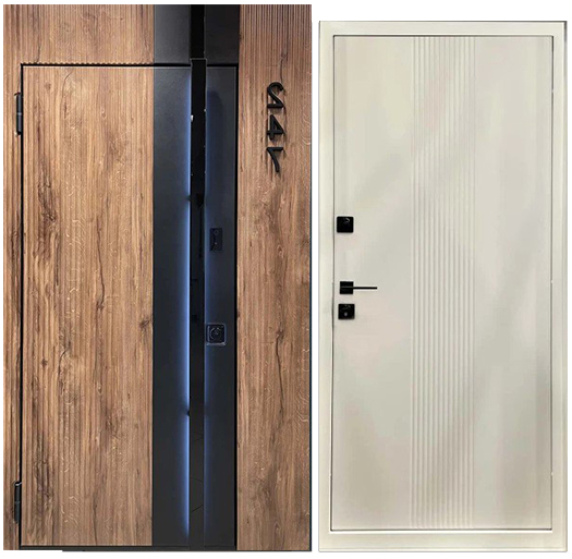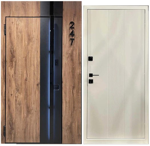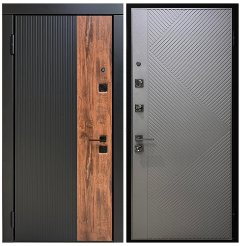 Снаружи: SteelLak «Черный» RAL 9005, структурный, рис CG.10, вставки Экошпон Premium «Дуб королевский»