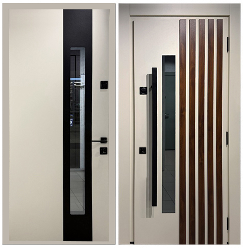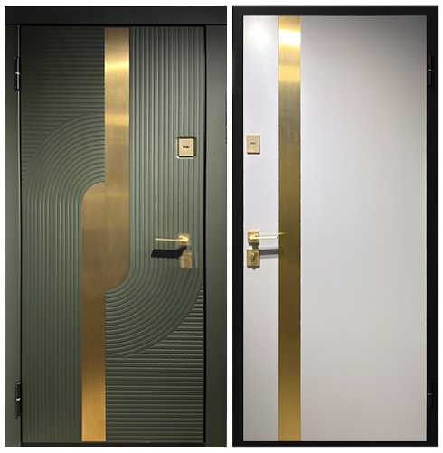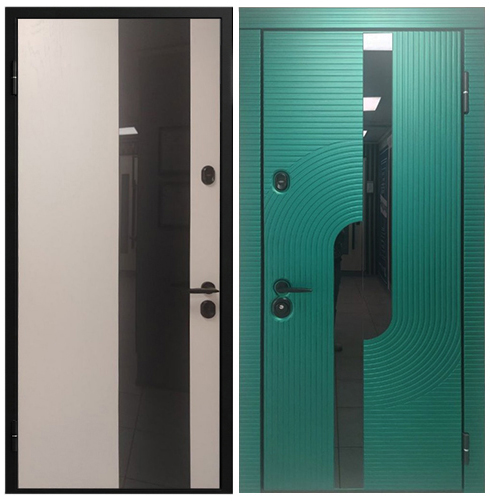 Снаружи: SteelLak «Нефрит» RAL 6036, гладкий с эффектом металлик, рис. CV2.05, вставки черный глянец