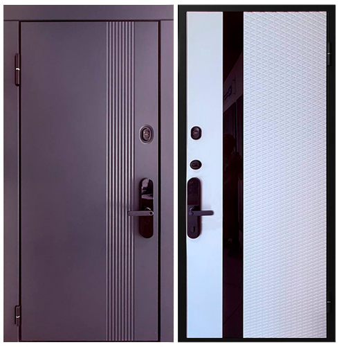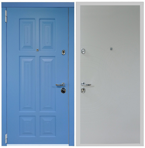 Снаружи: SteelLak «Синий» RAL 5011, гладкий с эффектом металлик, рис. CV2.01, вставки алюминиевый Т-молдинг, серебро