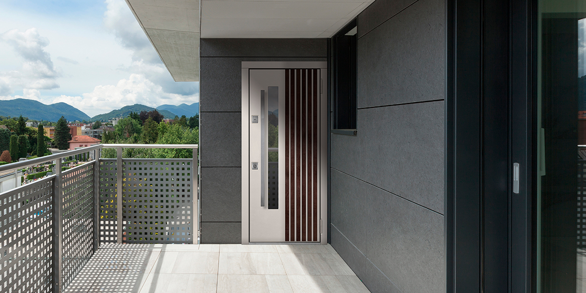 Модель «Аризона» — входная дверь в дом с отделкой SteelLak® и баффелями Серии 82У.