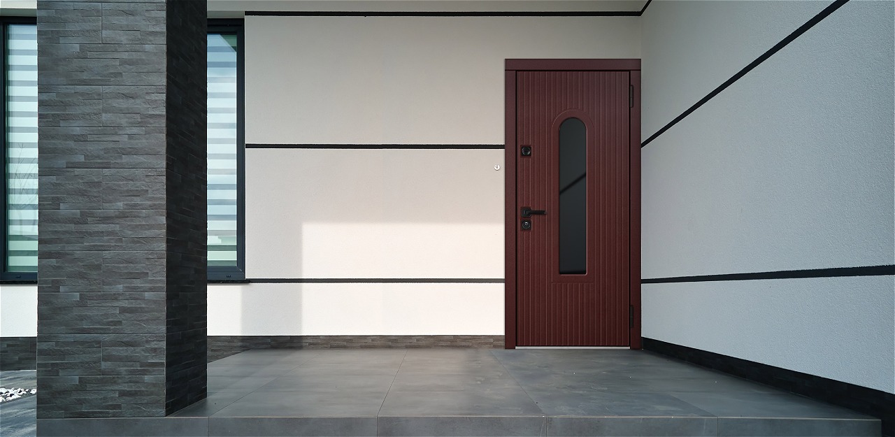 Модель «Эридан» — входная дверь яркого цвета в дом Серии 82У.