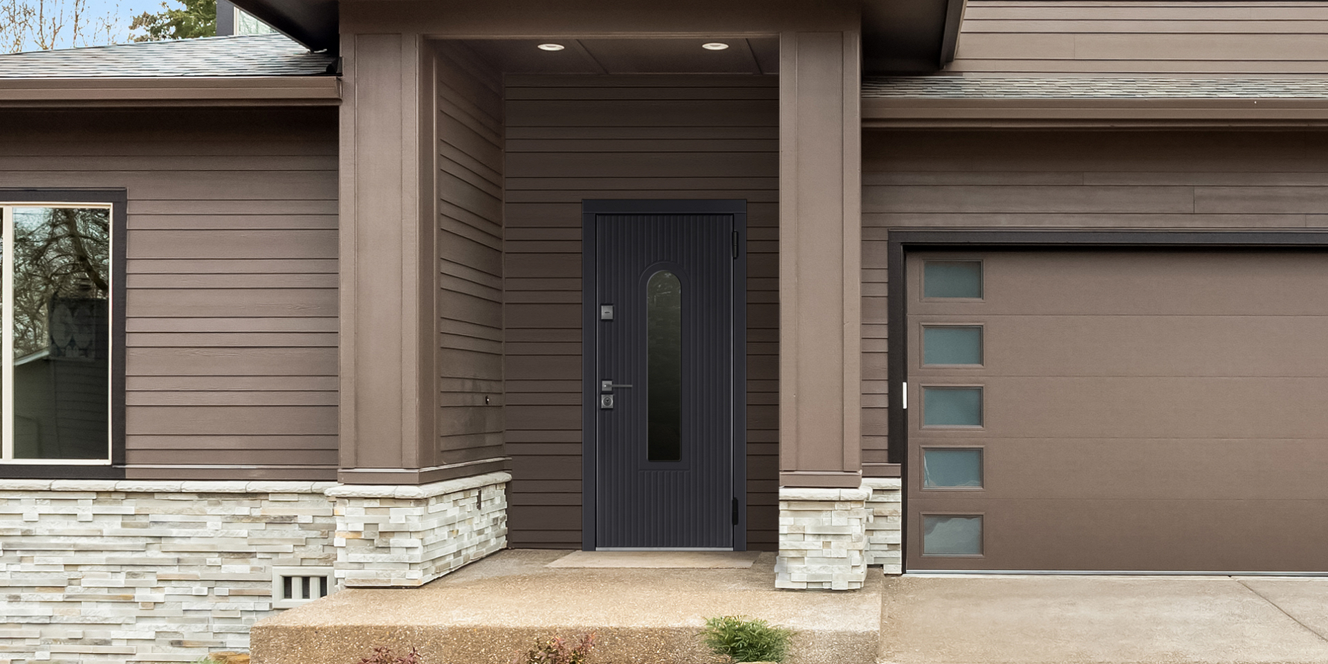 Модель «Эридан» — входная дверь цвета «Антрацит» в дом Серии 92УТ.