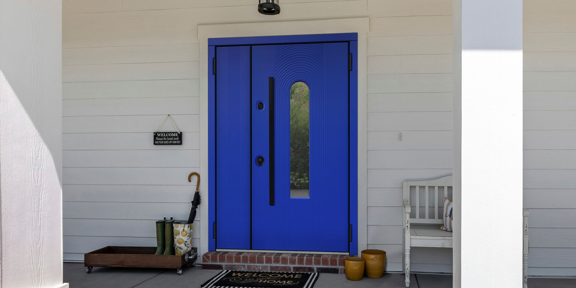 Для широкого проема: входная дверь нестандартного размера выглядит основательно и дает возможность использовать проем максимально функционально.