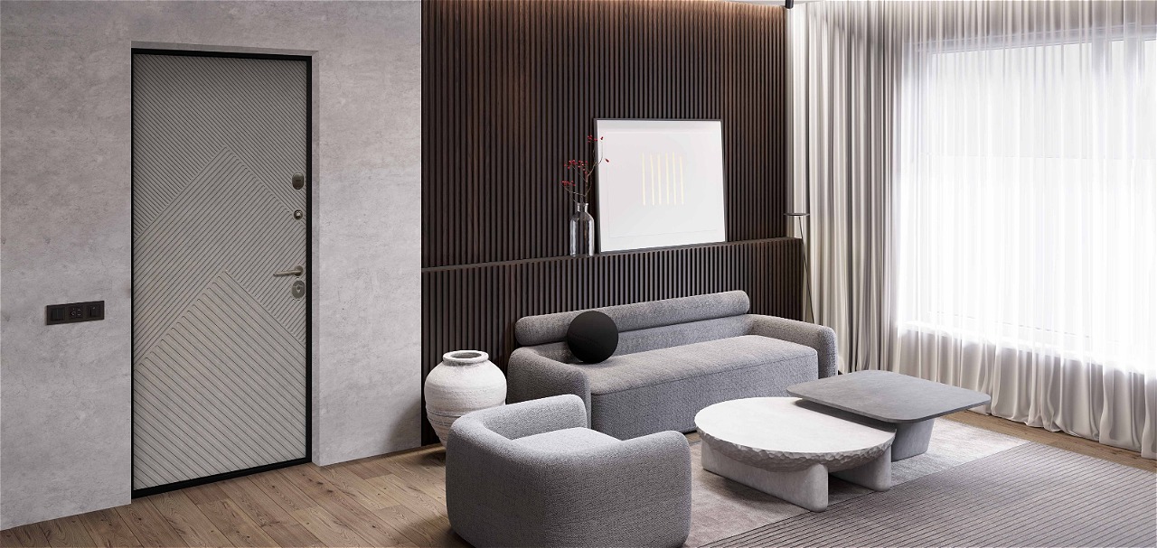 Модель «Мильтон» — входная дверь в квартиру с защитой от шума из Серии 100.