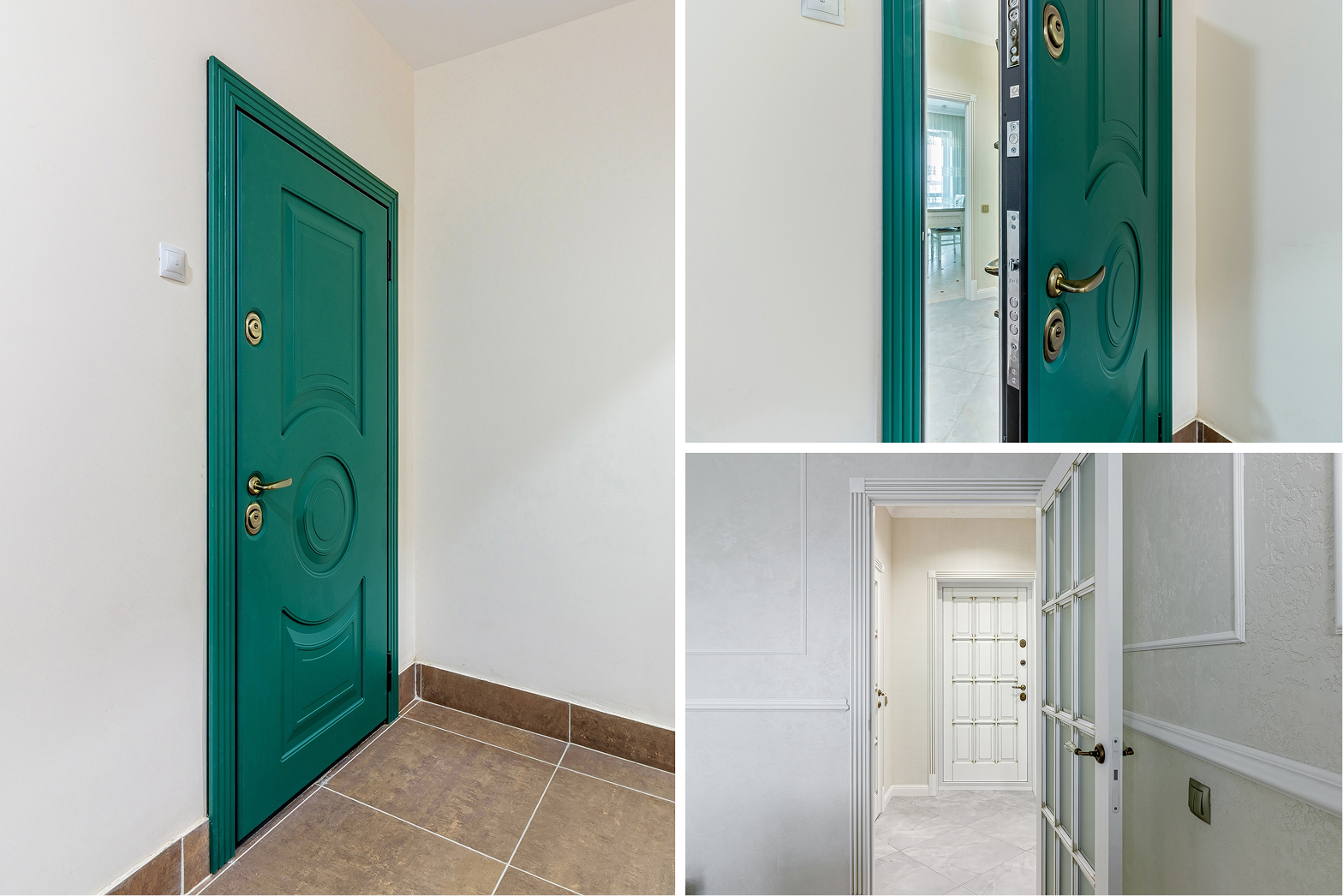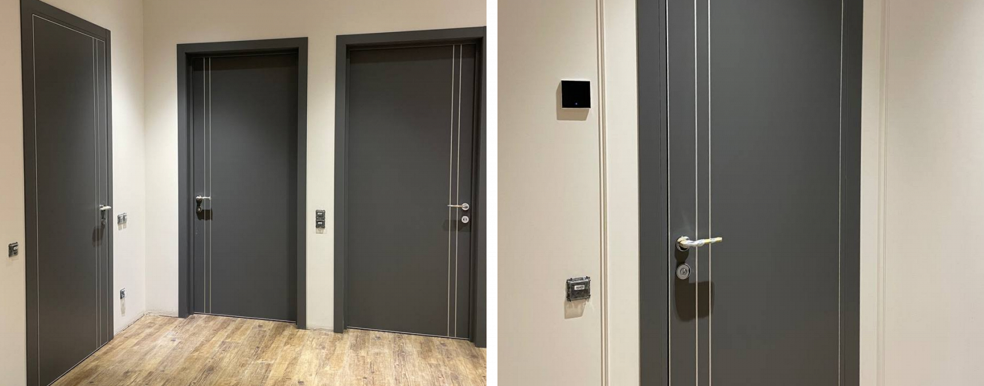 Мы подобрали одинаковые рисунки и цветовые решения для входных и межкомнатных дверей для создания единого гармоничного интерьерного пространства, в котором учтена каждая деталь.